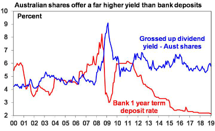 Sixth, dividends provide good income. Grossed up for franking credits the annual income flow from dividends on Australian shares is around 5.7%. That’s $5700 a year on a $100,000 investment in shares compared to $2150 a year in term deposits (assuming a term deposit rate of 2.15%).